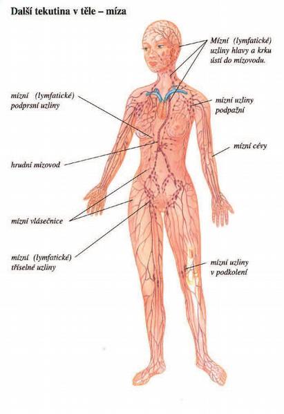 - mízní uzlina – malé orgány vmezeřené do lymfatických cév, zejména imunitní funkce